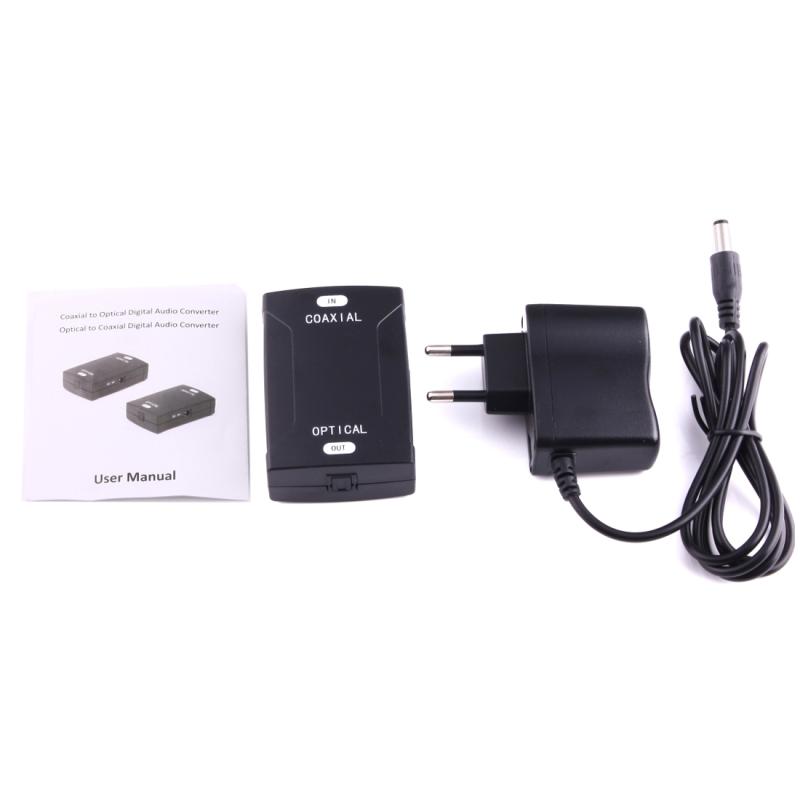 1. Digital Audio Signal Converter device converts Coaxial RCA Plug (IN) to Optical TosLink Plug (OUT). This converter will transform a digital RCA Coaxial (S/PDIF) audio signal to a Digital Toslink Optical signal. This coaxial to optical converter will allow you convert the coaxial digital audio output from your DVD, cable or satellite receiver to a Toslink digital optical input.