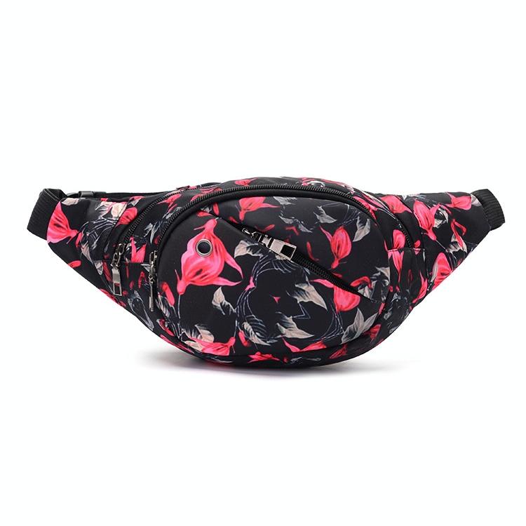 Color Printing Multi-function Casual Pockets Ladies Outdoor Purse Waist Bag(Red)
