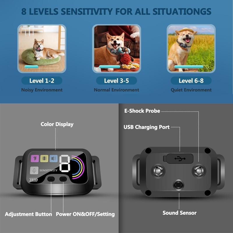 Color Screen Stop Bark Dog Trainer Anti Barking Pet Supplies(Dark Gray)