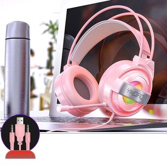 ERXUNG J5 Head-Mounted Gaming Headset Wire-Controlled Desktop Computer Gaming With Microphone Luminous Headset(Pink)