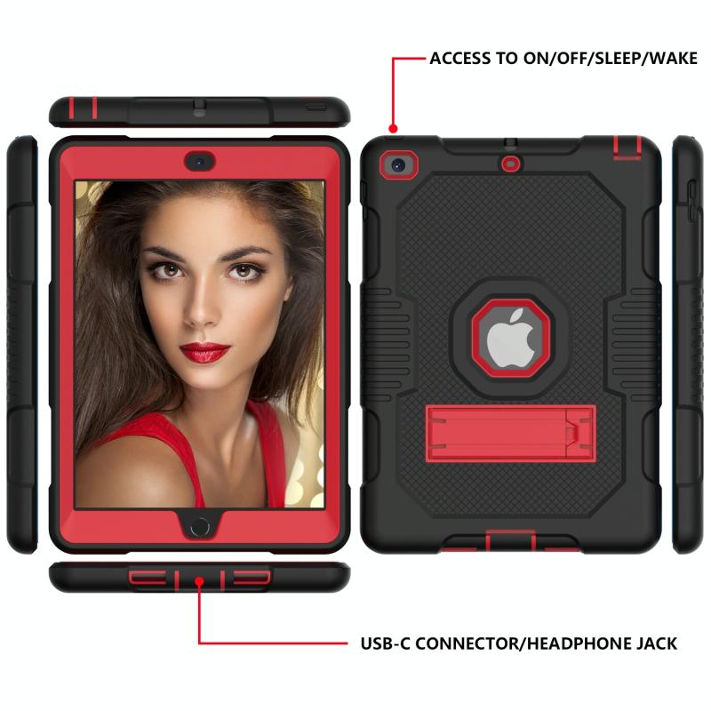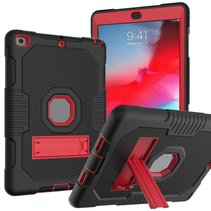 Contrast Color Robot Shockproof Silicone + PC Protective Case with Holder For iPad 9.7 (2017/2018)(Black Red)