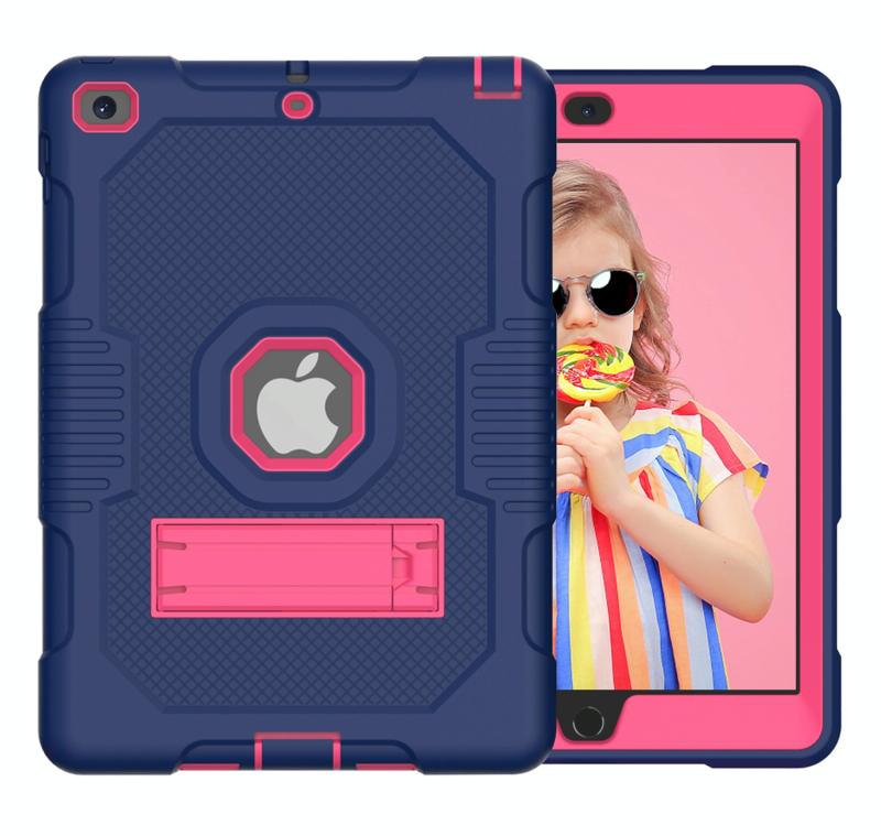 Contrast Color Robot Shockproof Silicone + PC Protective Case with Holder For iPad 9.7 (2017/2018)(Navy Blue Rose)