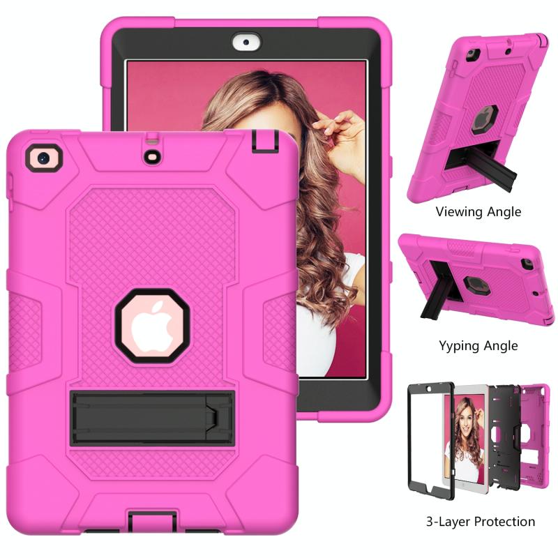 Contrast Color Robot Shockproof Silicone + PC Protective Case with Holder For iPad 9.7 (2018 / 2017)(Rose Red Black)