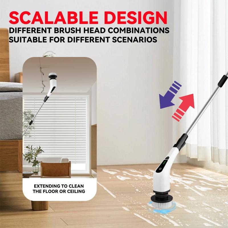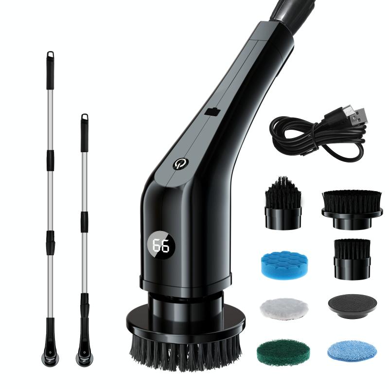 Cordless Electric Spin Scrubber Extension Handle with 7 Replacement Heads(Black)