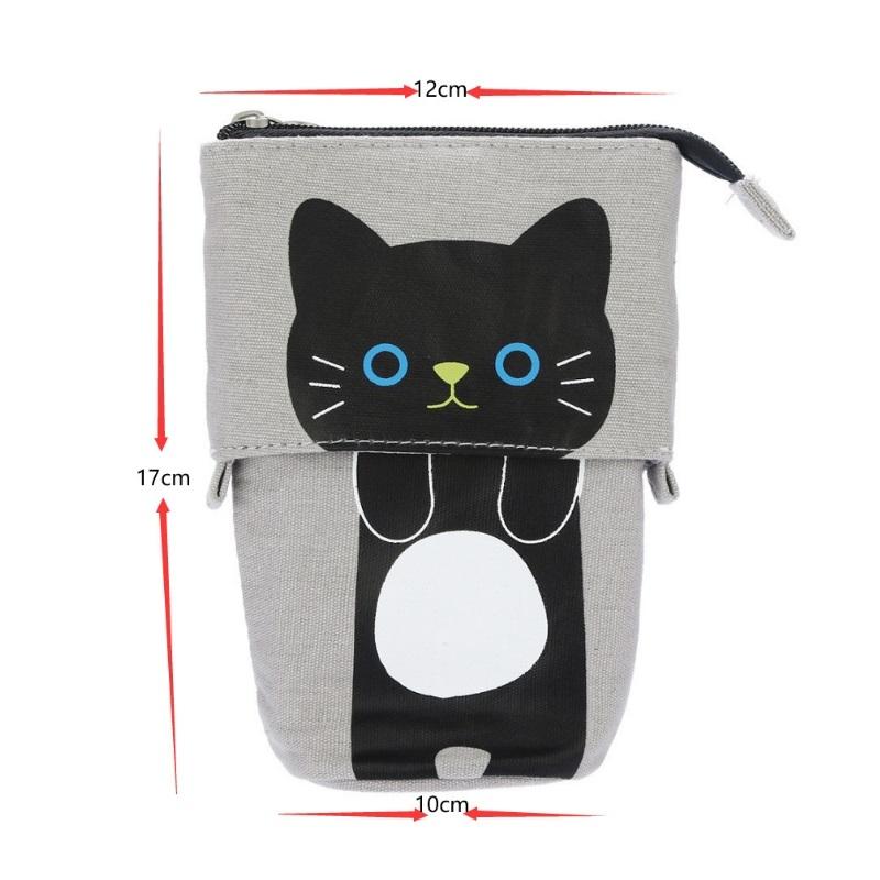 Corduroy Retractable Drop-Down Pencil Case Student Stationery Storage Bag(White Cat)