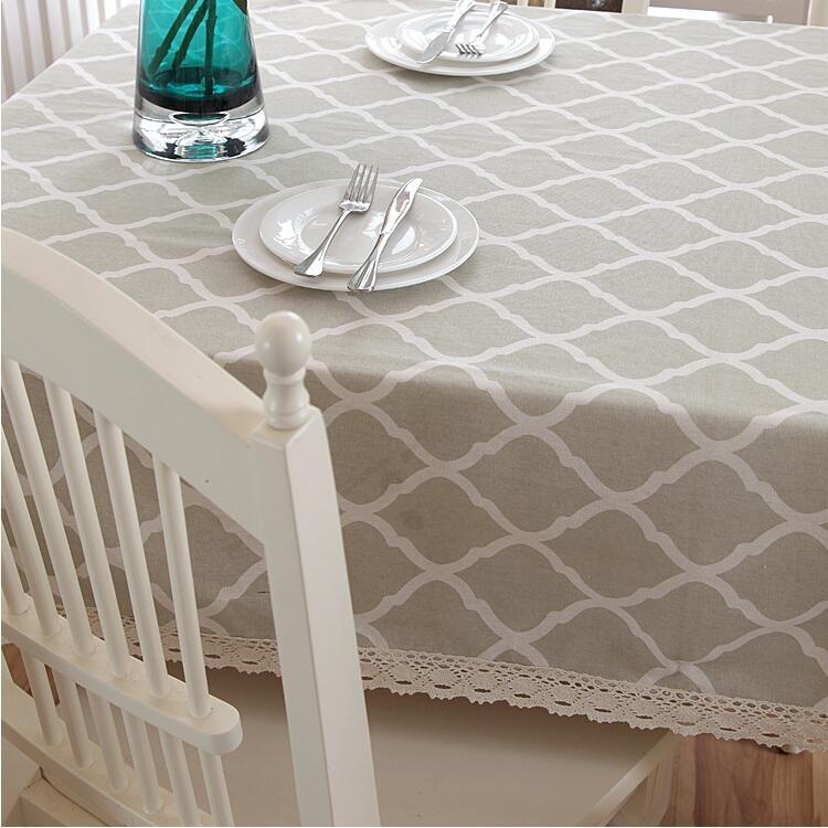 Cotton and Geometric Rhombus Gray LaceTablecloth, Size:100x140cm(With Lace)