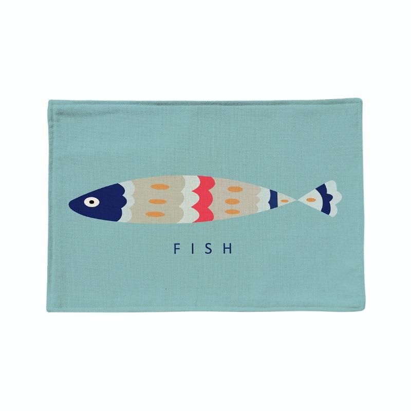 Cotton And Linen Single Side Mediterranean Simple Fresh Geometric Placemat Potholder Table Mat(Colored Fish)