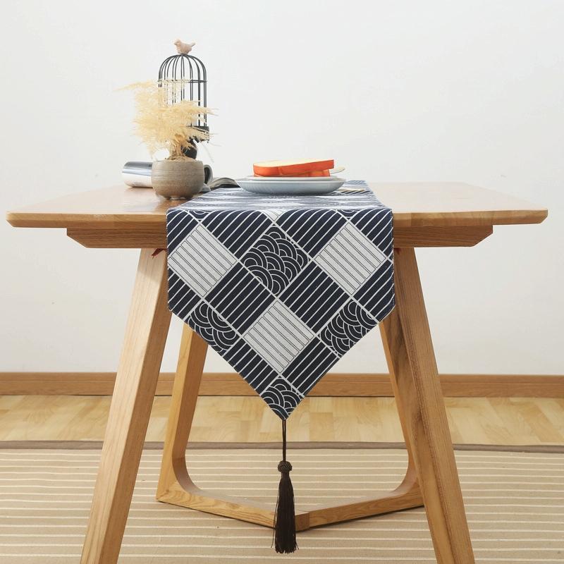 Cotton Linen Tea Table Dining Table Table Flag Retro Tablecloth, Size:30x240cm(Japanese)