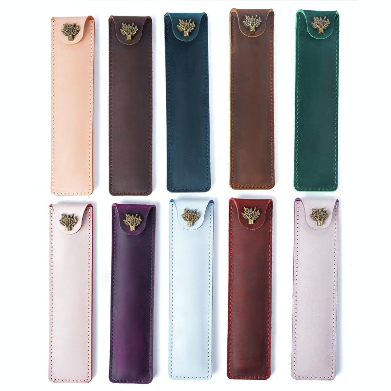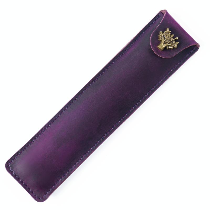 Cowhide Pencil Case Personalized Retro Handmade First Layer Cowhide Pen Case(Crazy Horse Skin Purple)