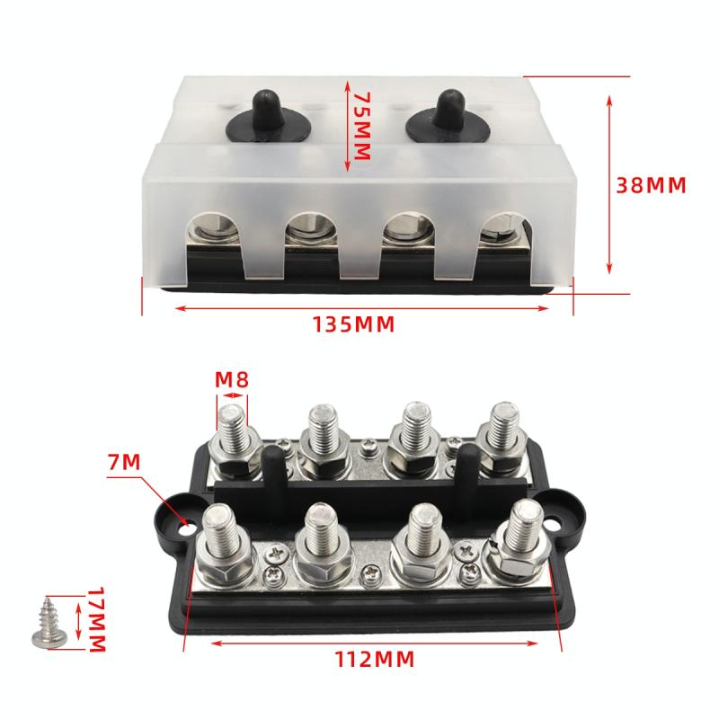 M8 double-row 4-way busbar x 1, screw x 2 / M10 double-row 4-way busbar x 1, screw x 2