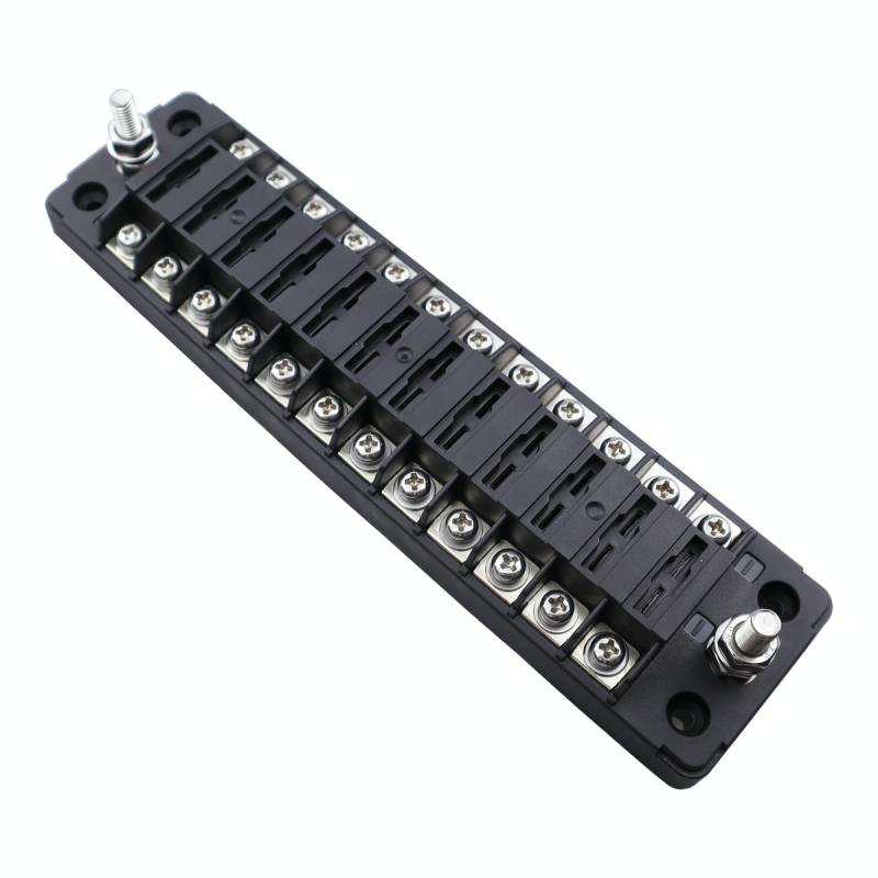1. 12V fuse block comes with negative busbar, damp proof cover. All busbars and fuse clips are nickel-plated copper, which has corrosion resistance and good conductivity.