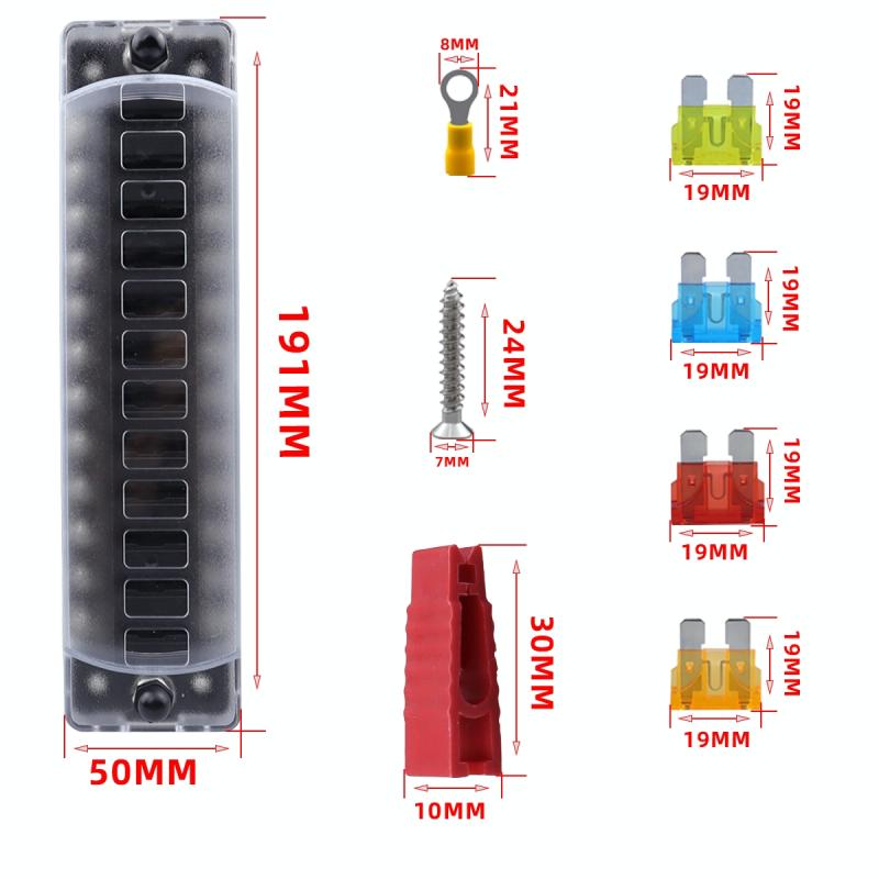 3. This 12-Circuit Blade Fuse Box is widely used automotive car boat, suitable for all marine, motor-home, automotive & motorsport applications.