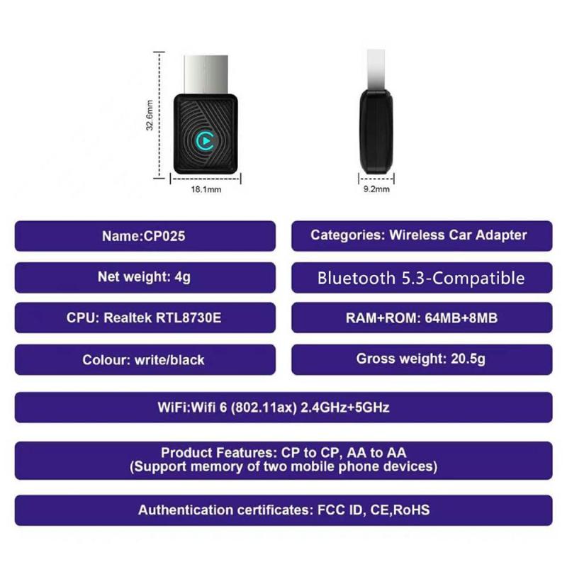 5. Dual Device Memory Support:CP025 supports both CarPlay to CarPlay and Android Auto to Android Auto connections, remembering multiple devices for quick switching.