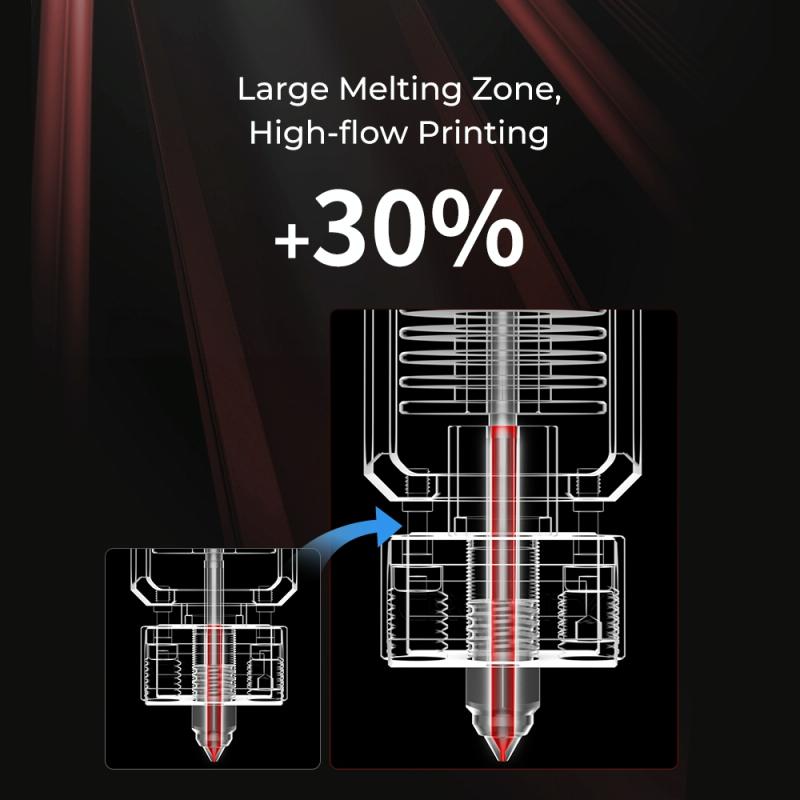 - (The melting zone length is 27.3mm), smooth printing even with 0.8mm nozzle