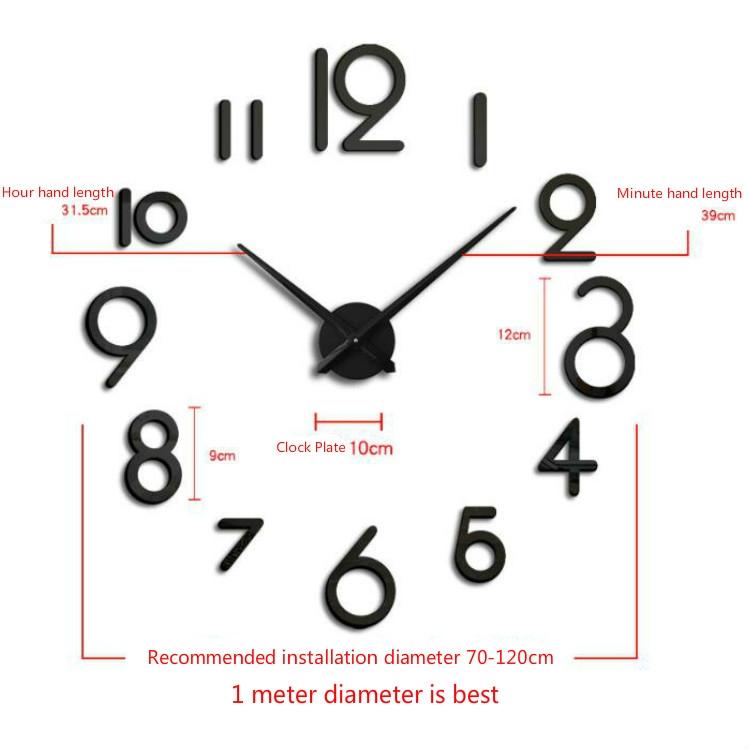 2. Dimensions: minute hand 39 cm, hour hand 31.5 cm, dial diameter 10 cm, recommended installation diameter 70-120 cm
