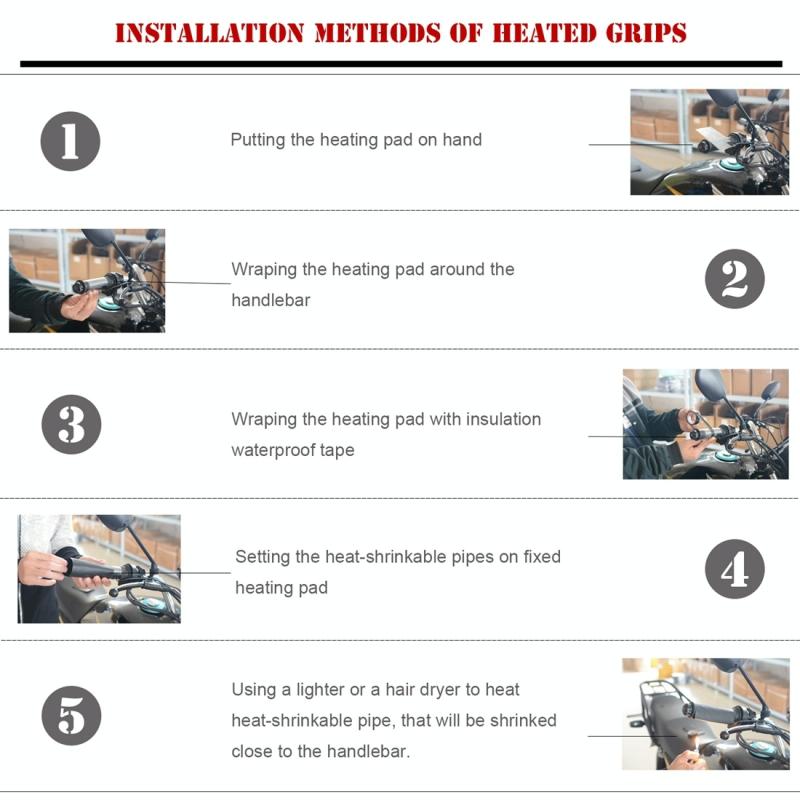 2. Use tape to fix (wrap) the heater evenly on the handlebars, especially at the junction of the heater.