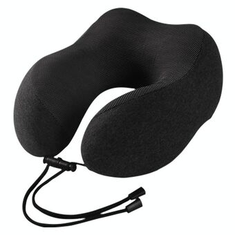 Knitted Cotton U-Shaped Memory Foam Pillow Portable Travel Neck Care Pillow(Black Gray)