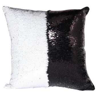 DIY Two Tone Glitter Sequins Throw Pillow Case Reversible Sequin Magical Color Changing Pillow Cover, Size: 40*40cm(White+Black)