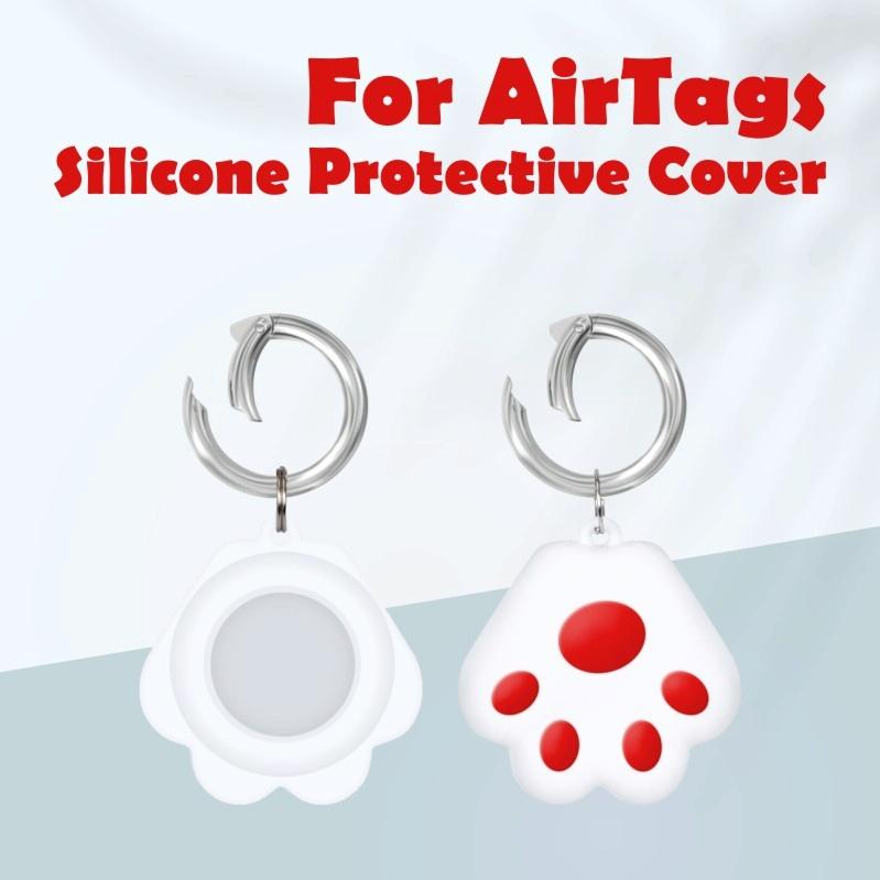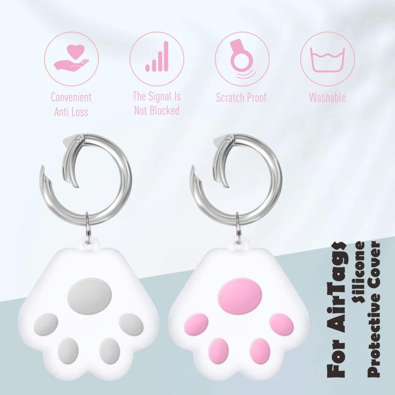 Cute Cat Paw Silicone Shockproof Protective Cover Soft Case with Keychain Ring Loop For AirTag(Black)