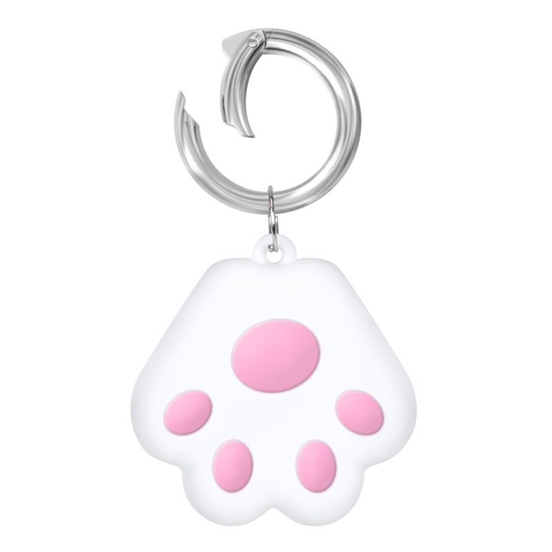 Cute Cat Paw Silicone Shockproof Protective Cover Soft Case with Keychain Ring Loop For AirTag(Pink)