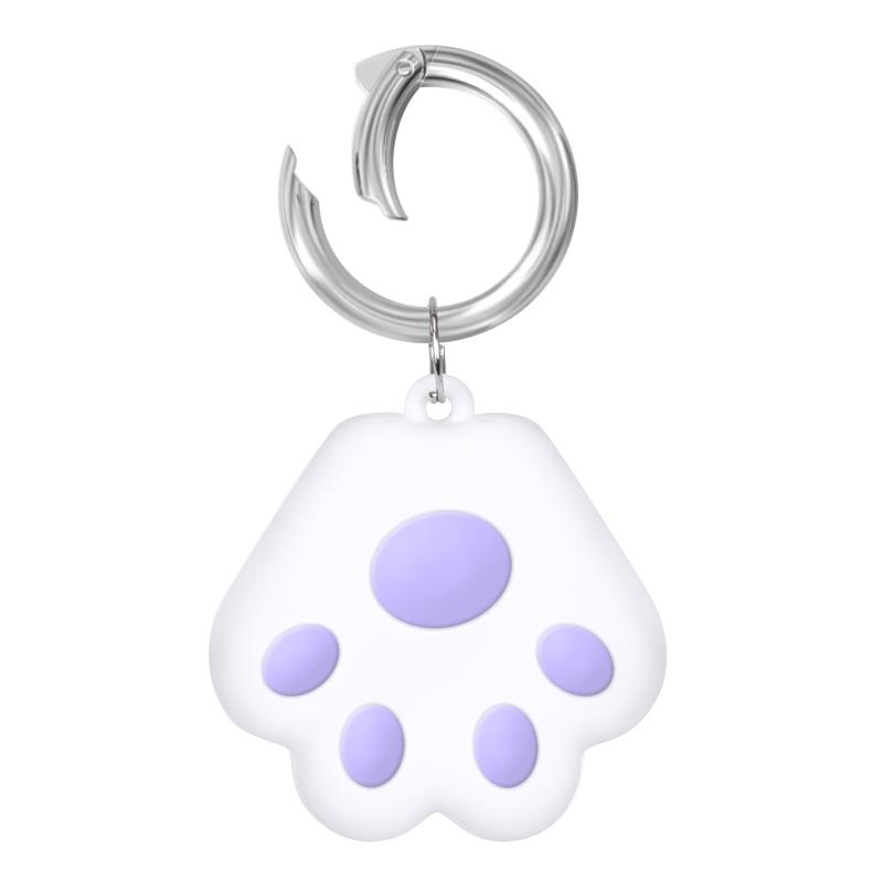 Cute Cat Paw Silicone Shockproof Protective Cover Soft Case with Keychain Ring Loop For AirTag(Purple)