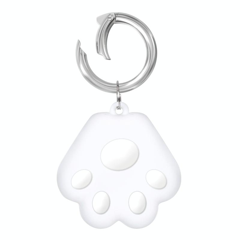 Cute Cat Paw Silicone Shockproof Protective Cover Soft Case with Keychain Ring Loop For AirTag(White)