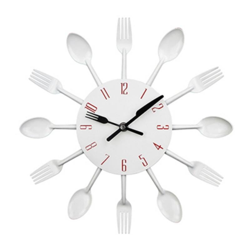 Package Contents: 1 x Stainless Steel Knife Fork Spoon Analog Wall Clock Home Decoration