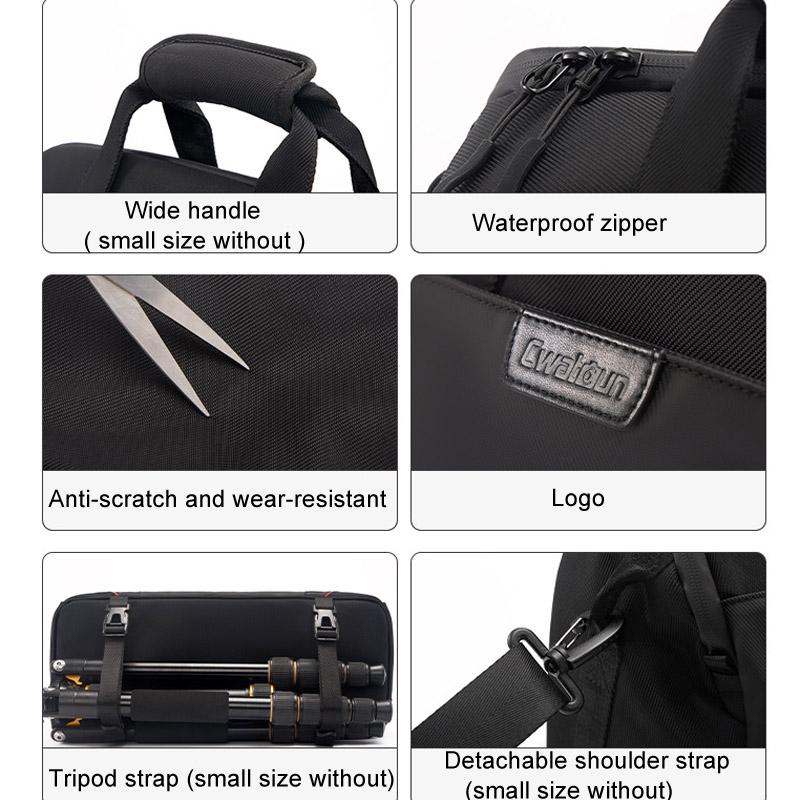 5. Bottom tripod strap, removable shoulder strap (small size without these features)