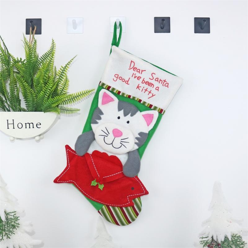 CX20224 Cat Pattern Christmas Sock Gift Bag Christmas Tree Pendant Decoration