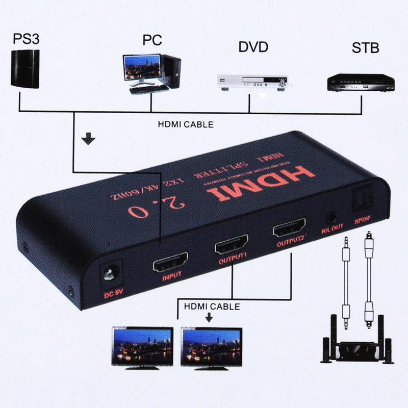 8. Support single HDMI source, accessing to multiple HDMI sinks, the source can be DVD player, AAZ receiver, set top box and etc.