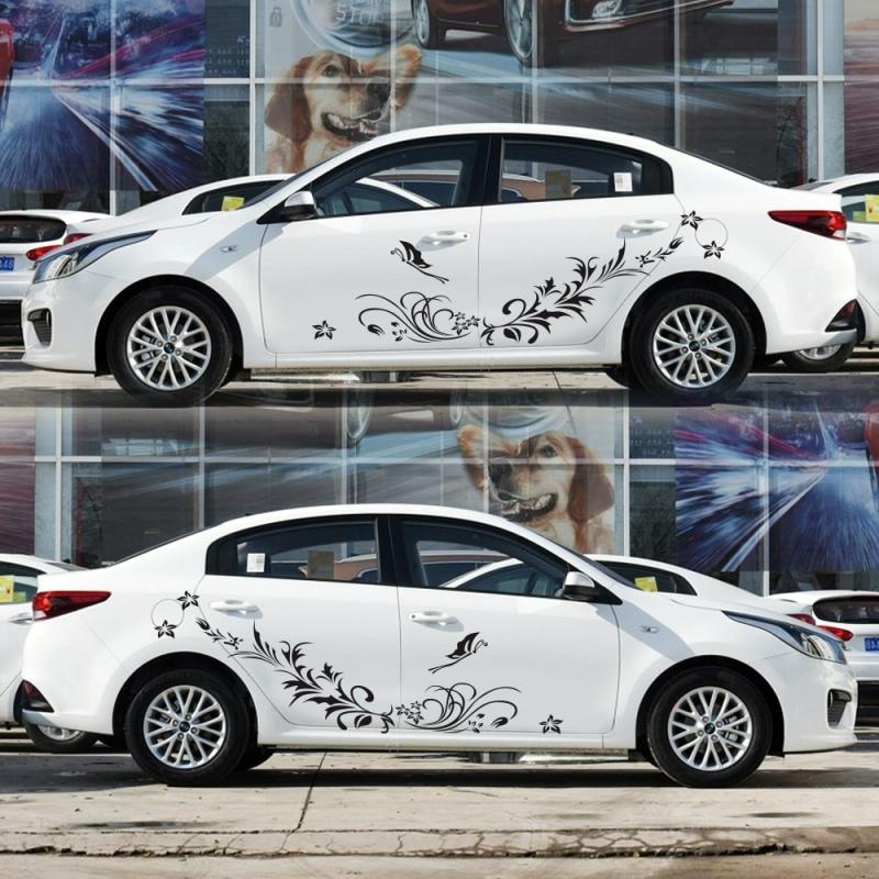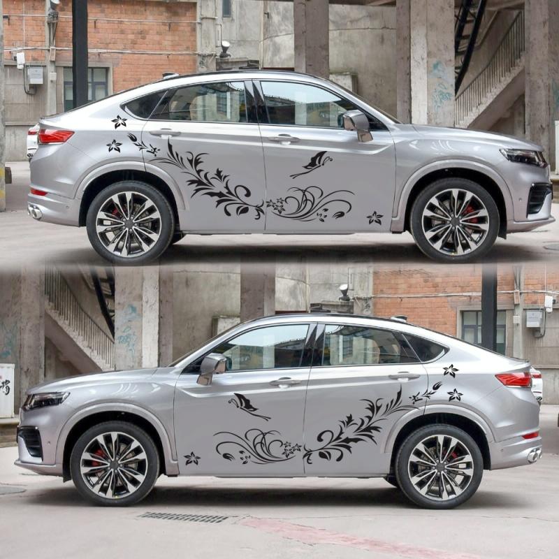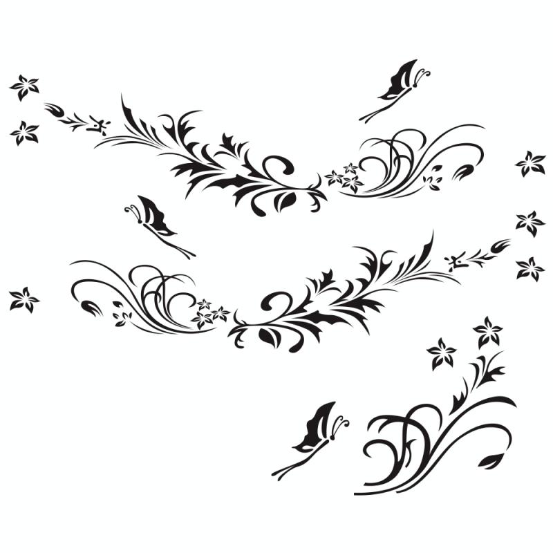 D-462 Butterfly Loves Flowers Pattern Car Modified Decorative Sticker(Black)