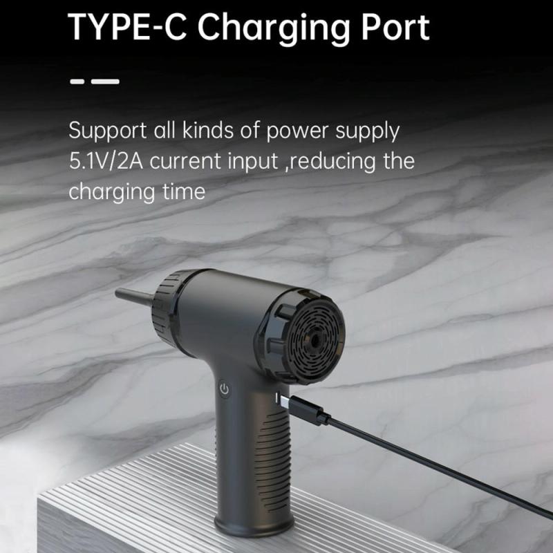5. Rechargeable Power:Equipped with a fast-charging port and upgraded 1800mAh battery, this computer duster charges quickly in three hours and operates continuously for 15-30 minutes. Compatible with car chargers, power banks, and laptops for on-the-go charging.