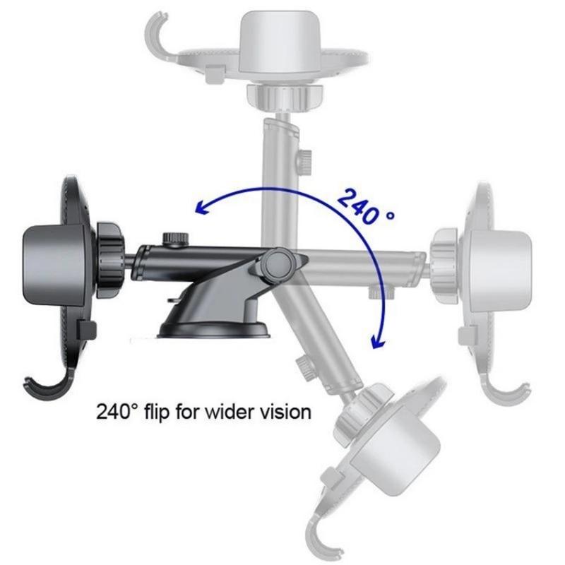 1.The holder is equipped with a super-strong suction cup base, ensuring a stable hold on either the dashboard or windshield without leaving any residue