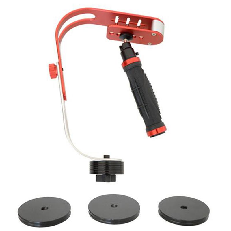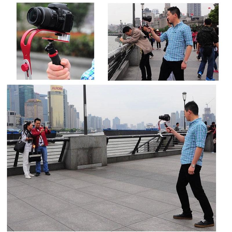 6) Reduce shake and stabilize video on compact cameras and lightweight camcorders up to 1.0 kg, features aluminum construction, comfortable handle grip, super-smooth gimbal, addable counter weight, spirit level, rubberized camera mount and thumb stabilizer.