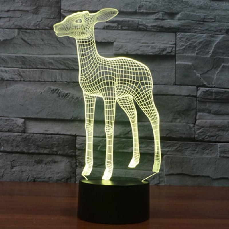 Deer Style 3D Touch Switch Control LED Light , 7 Color Discoloration Creative Visual Stereo Lamp Desk Lamp Night Light