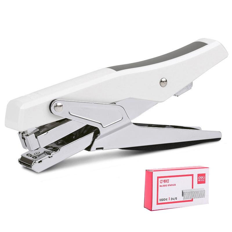 Deli Labor-saving Stapler NO.12 Handheld Stapler Papers Stapling Machine, Spec: 0329 White With 1000 Staples (Deli)
