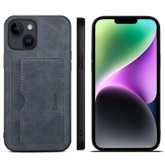 For iPhone 15 Plus Denior PU Single Card Slot Holder Phone Case(Blue) (Denior)