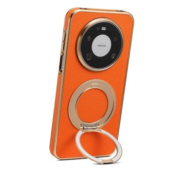 For Huawei Mate 80 Pro / 80 Denior A23 Magnetic Holder Electroplating Genuine Leather Phone Case(Orange) (Denior)
