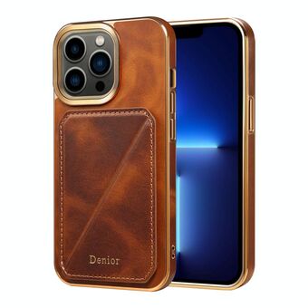 For iPhone 13 Pro Denior Oil Wax Leather Electroplating Card Slot Holder Phone Case(Brown) (Denior)