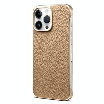 For iPhone 14 Pro Denior A20 Genuine Leather Litchi Texture MagSafe Frameless Phone Case(Khaki) (Denior)