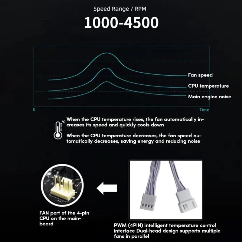 6. Support connecting motherboard PWM temperature control interface, according to the CPU temperature intelligent adjustment of fan speed, energy saving and noise reduction