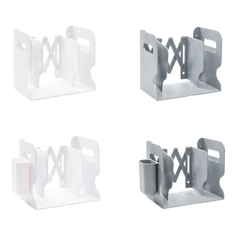 Desktop Folding And Retractable Book Storage Stand, Color: White + Pen Holder