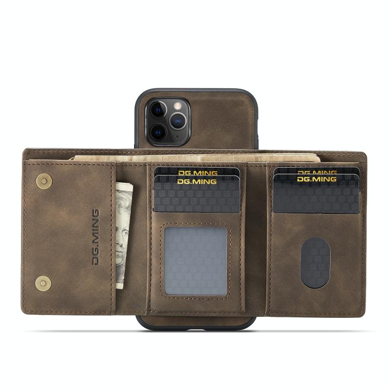 DG.MING M1 Series 3-Fold Multi Card Wallet Back Cover Shockproof Case with Holder Function For iPhone 11 Pro(Coffee) (DG.MING)