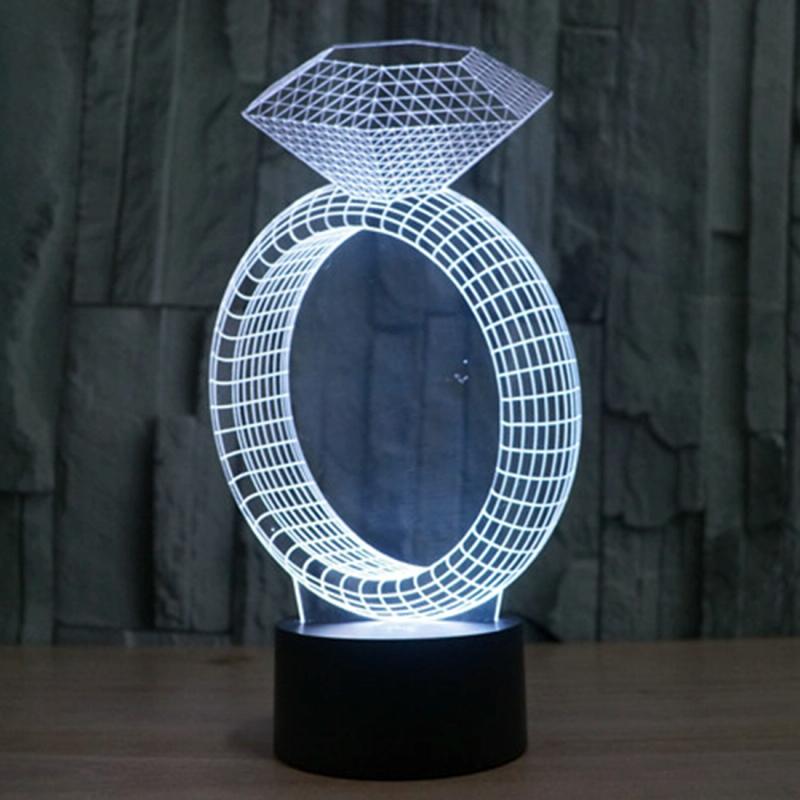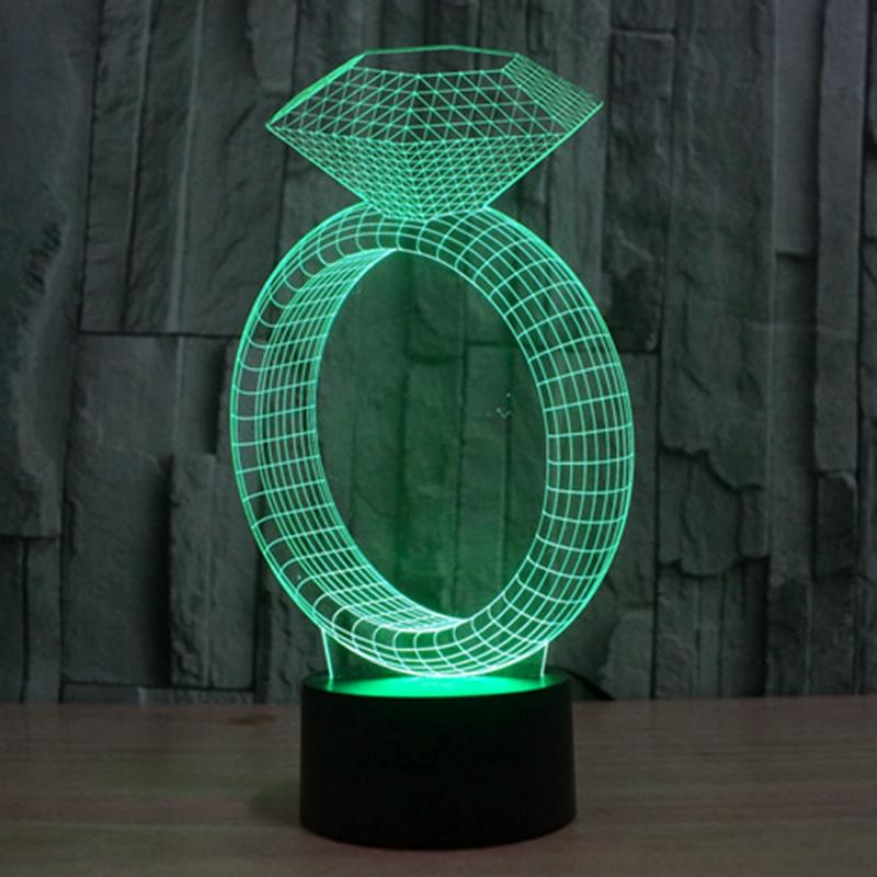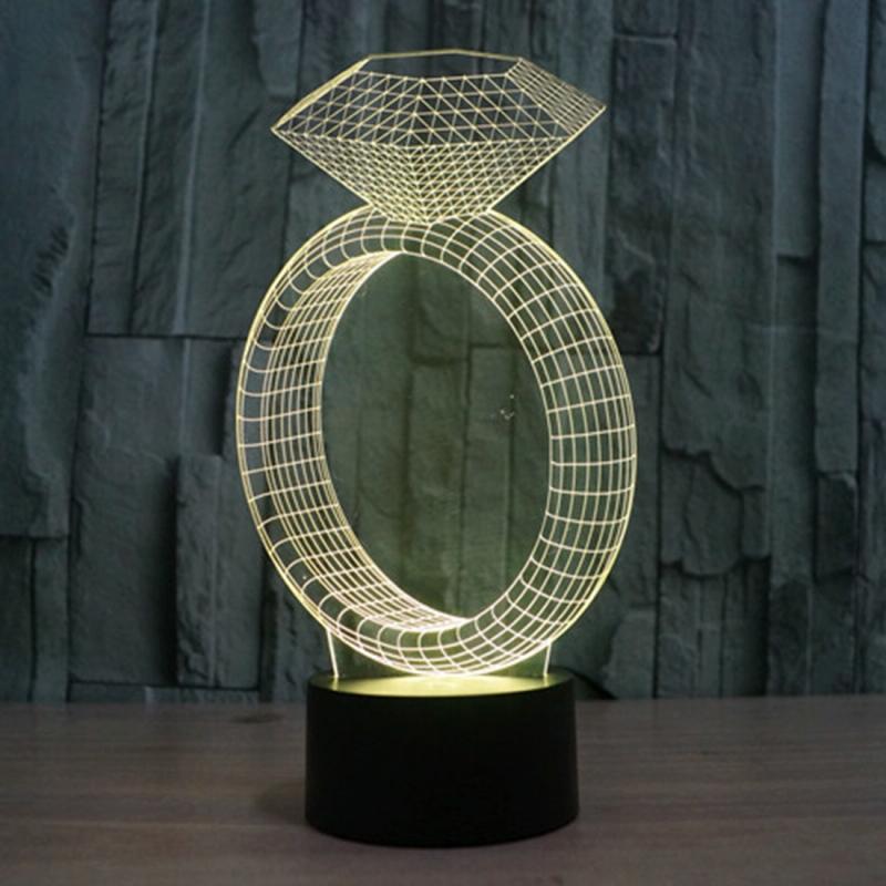 Diamond Ring Style 3D Touch Switch Control LED Light , 7 Color Discoloration Creative Visual Stereo Lamp Desk Lamp Night Light