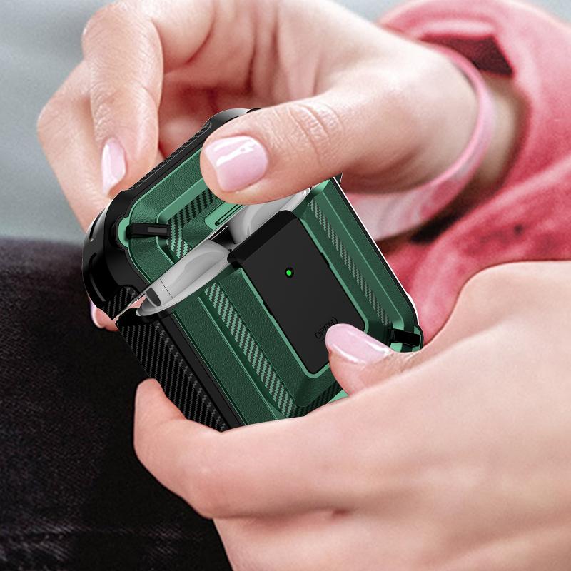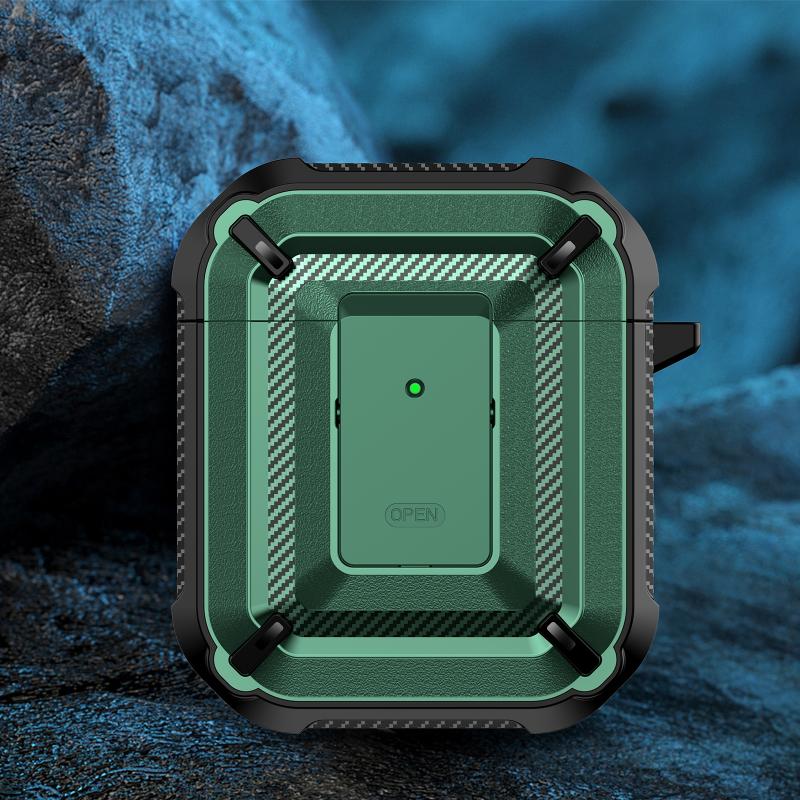 Diamond Texture Earphone Protective Case with Switch & Hook For AirPods 1 / 2(Green)