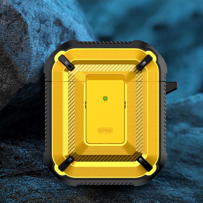 Diamond Texture Earphone Protective Case with Switch & Hook For AirPods 1 / 2(Yellow)
