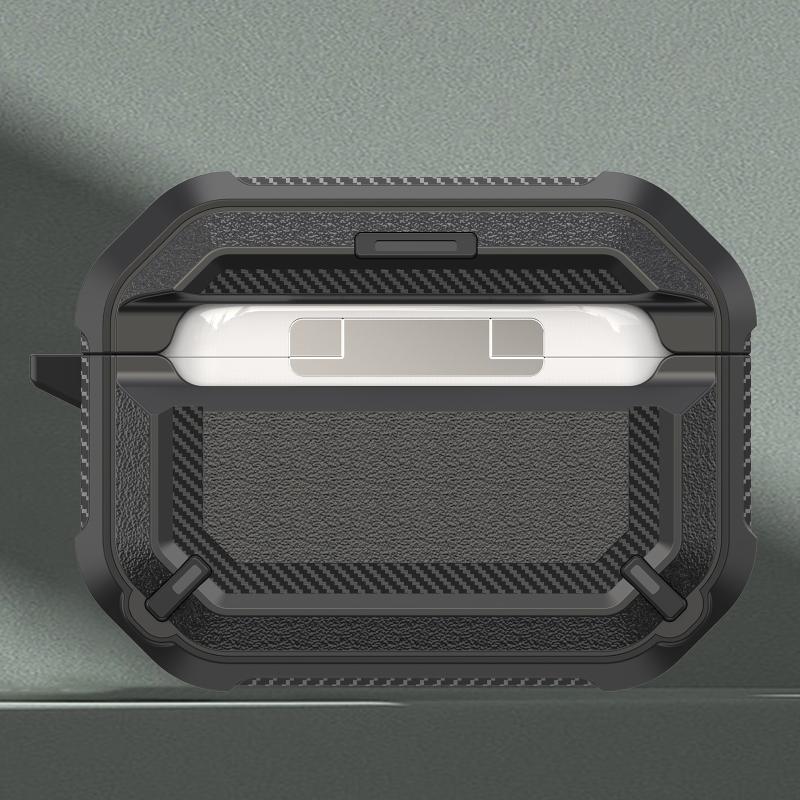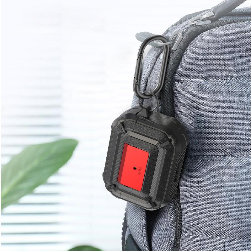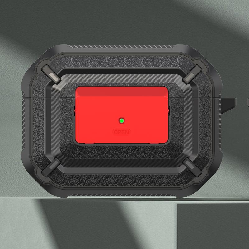 Diamond Texture Earphone Protective Case with Switch & Hook For AirPods Pro(Black + Red)