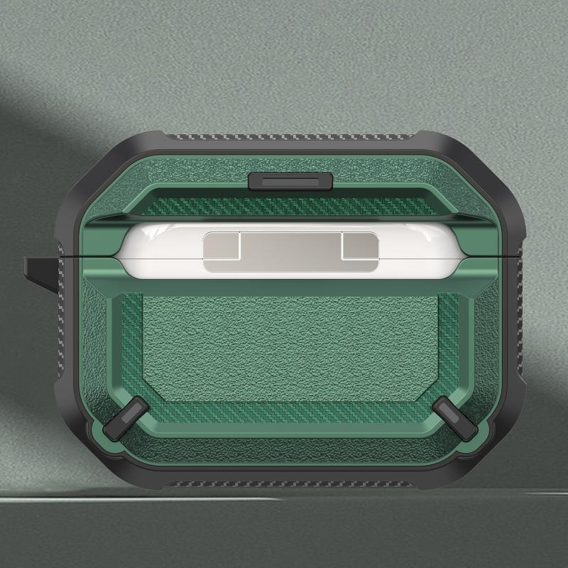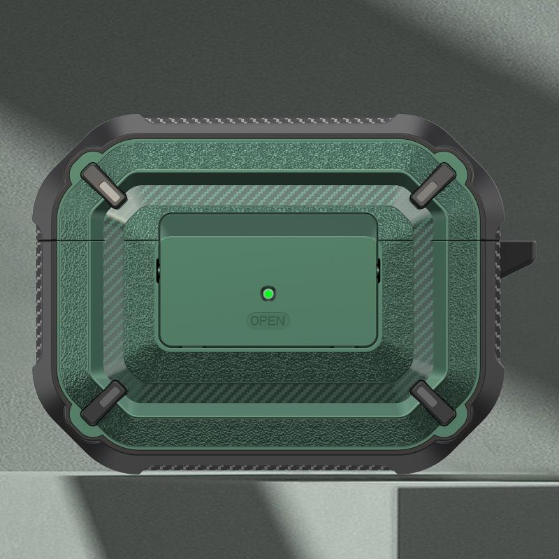 Diamond Texture Earphone Protective Case with Switch & Hook For AirPods Pro(Green)