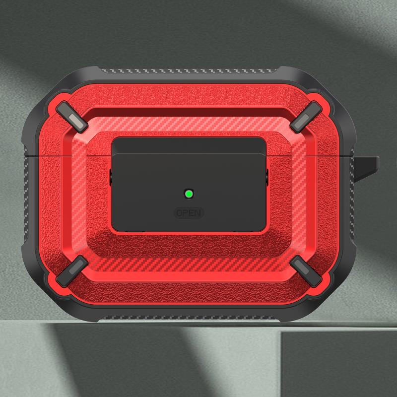 Diamond Texture Earphone Protective Case with Switch & Hook For AirPods Pro(Red + Black)