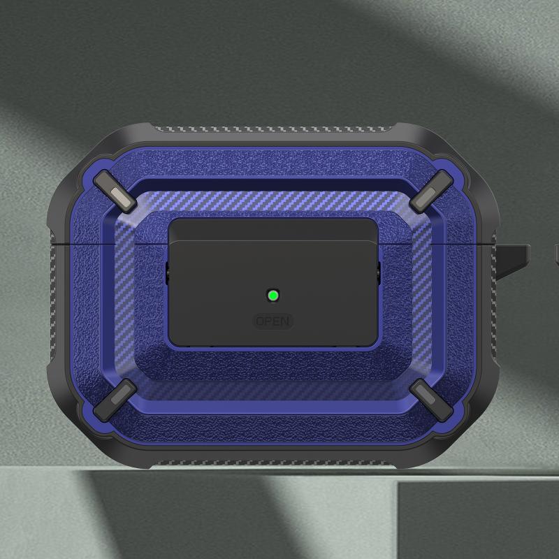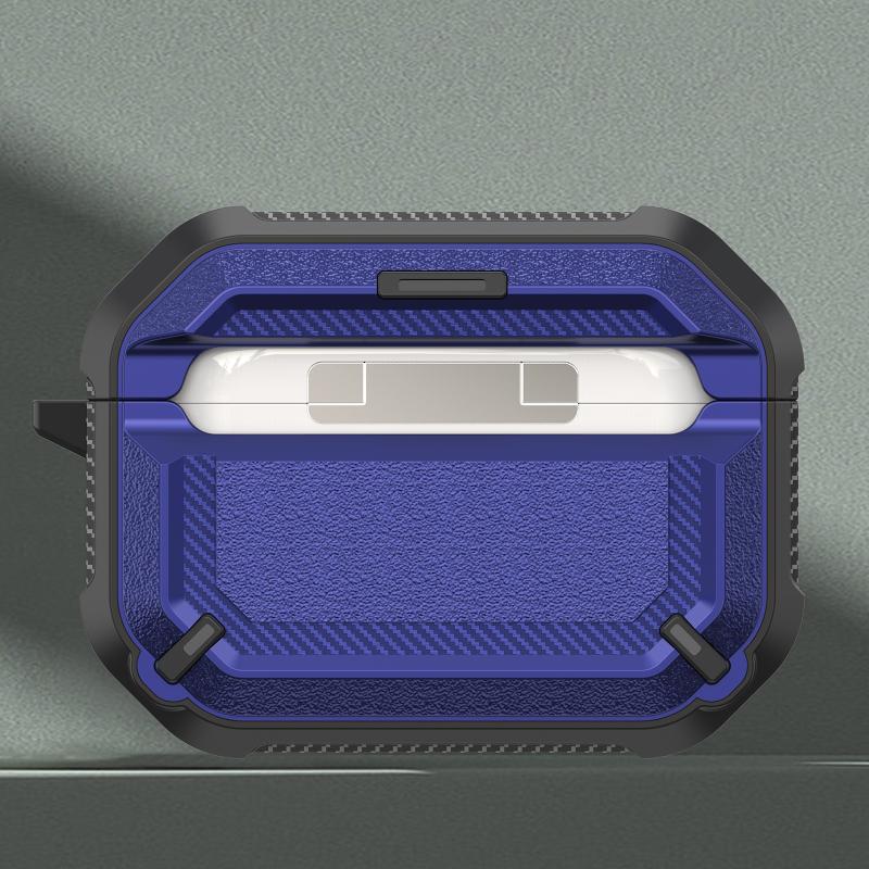 Diamond Texture Earphone Protective Case with Switch & Hook For AirPods Pro(Royal Blue + Black)